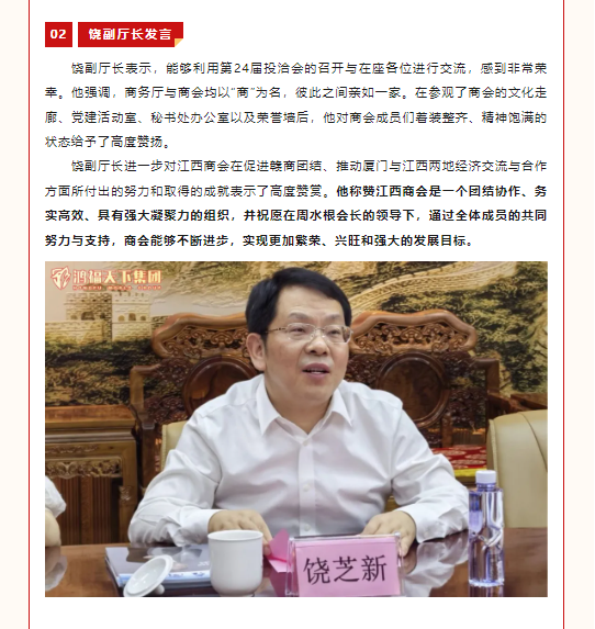 鸿福动态|热烈欢迎江西省商务厅党组成员、副厅长饶芝新一行莅临江西商会指导调研